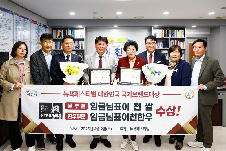 [이천시 세계타임즈=송민수 기자] 경기 이천시(시장 김경희)의 대표 농축산물 브랜드인 ‘임금님표이천쌀’이 올해로 17회를 맞이한 2026 뉴욕페스티벌-대한민국 국가브랜드대상(NYF K-NBA)에서 쌀 부문 1위로 선정되어 대한민국 최고 브랜드로서의 위상을 다시 한번 공고히 했다. 이번 수상으로 이천시는 2012년 공동브랜드부문 ‘임금님표이천’ 수상을 시작으로 12년 수상의 명예를 얻었다.